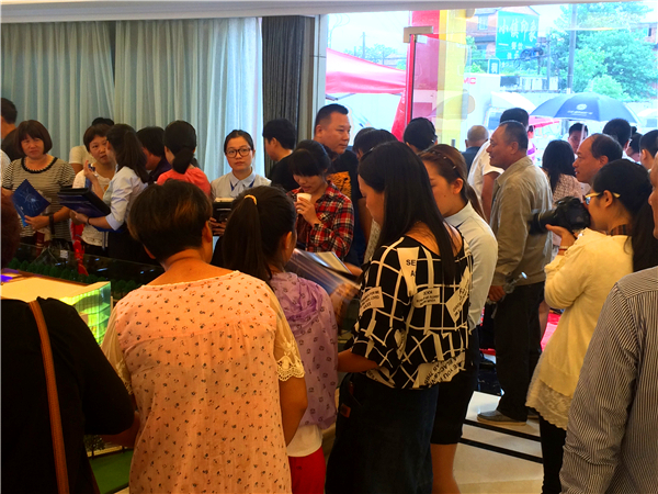 楼盘模型前围满了了解项目的人们