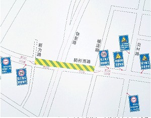 稠州西路封闭施工期间的车辆出行示意图。