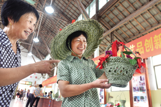 茭白叶能做什么?种了20多年冷水茭白的义乌赤岸镇柏峰村村民杨炳德万万没想到,一直拿来当柴火烧、烂在地里的茭白叶能变出这么多花样来———编成果篮、草帽,做成墙画、书签,甚至变身为雨伞、台灯。