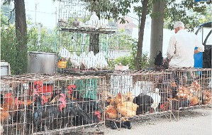 中国义乌网9月7日讯(义乌商报记者 朱葵阳)昨日,市民监督团成员丁先生致电本报新闻热线15057912345反映:“早在2013年7月中旬,我市就开始整治非法交易活禽行为,在一定区域内限制活禽交易,实行‘集中屠宰、冷链配送、生鲜上市’,可是前几天北苑街道前洪综合市场前面的道路上摆着好几个家禽售卖摊点,竟然当场宰杀退毛销售活禽。”