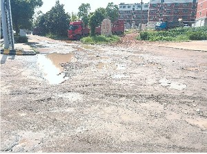 随后,记者来到机场路辅道杨街小区段,从机场路889号一直到园林石大卖场这一路段仍是“泥巴路”,坑坑洼洼,污水横流。每天有大量的车辆经过这一路段,泥巴跟着车轮带到了机场路上。一路边开店的经营户说:“机场路主道路面很好,可这段辅道是最差的。特别是下雨天,车辆经过泥巴水四溅,严重影响周围环境卫生。”