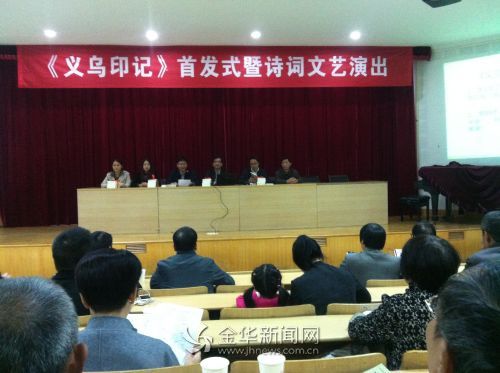 今天下午,由义乌市文广新局和义乌市诗词楹联学会主办的《义乌印记》首发暨诗词文艺演出活动,在义乌宾王中学体育馆报告厅举行,近200名诗词楹联学会会员和部分文学爱好者欢聚一堂,听讲座、看演出、商谈义乌文艺发展。