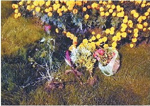 鲜花静静地“躺”在草地上。