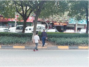 市民横穿绿化带。
