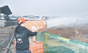 据介绍,这种新型喷雾机直径近1米,喷出来的雾气覆盖范围广、雾粒细小,可以有效抑制扬尘污染。今年6月,有关部门在我市率先引进这种“降尘神器”,经过半年试用,总体效果较好。