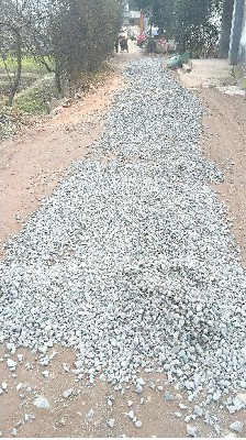 苗店村村口,租户自发从工地拉来碎石子填路。