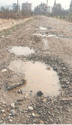 从环徐线到后陈村的泥巴路上的一个个水坑。