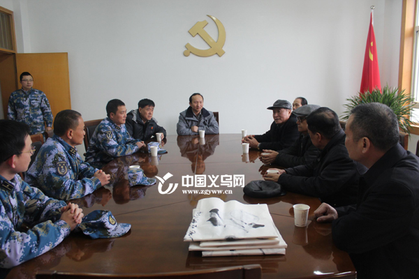 中国义乌网1月21日讯(通讯员 何必会 记者 楼雅琪)1月20日下午,前来义乌参加“学习十八届五中全会精神——道德文化走进商城”活动的海军航空兵原副政委李春明将军、西昌卫星发射基地原政委刘克仁将军、国务院原总理周恩来的秘书警卫纪东将军一行,在义乌市双拥办吴长龙、义乌市爱国拥军联合会、国玺经贸有限公司代表何兆伟等人的陪同下,慰问了海航驻义飞行团和场站部队。