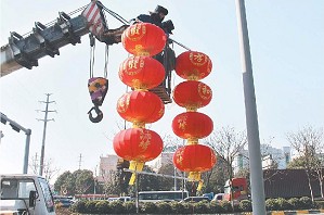 为烘托红红火火、吉庆迎新春的节日氛围,1月23日以来,市城建资源经营有限责任公司派出4班人马,先后在县前街、北门街、城中路和机场路悬挂288组红灯笼。