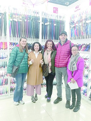 张吉英(左二)与外商合影。