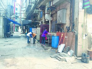 一位在商贸区工作的市民告诉记者,有些饭店,连杀鱼都在饭店后门杀,桶里的血水就直接倒在路边,她曾经看到有人从小弄堂里经过,因为饭店后门的污水而滑倒,“晚上,小弄堂里灯光很暗,路面上又都是油污和污水,有的人不小心就跌倒了。”