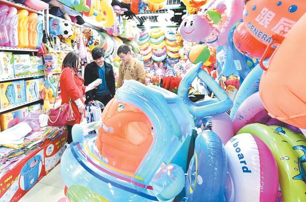 中国义乌网4月1日讯(义乌商报记者 骆贤政)虽然眼下气温不高,但国际商贸城嬉水用品交易已明显升温。在市场上可以发现,形形色色的泳圈及充气浮床、充气泳池、充气皮划艇等商品销售十分抢眼,创意型嬉水新品尤其抢手。