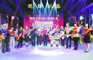 中国义乌网4月7日讯(义乌商报记者 龚献明)“他们普普通通,但每个人都闪耀绽放着光芒;他们不求名利,但每个人都在付出中收获着幸福。”昨晚的义乌广电台演播厅星星熠熠,“感动义乌2015年度人物”颁奖典礼在这里隆重举行。或许,这些“星星”并不是满天星辰中最为亮丽的一颗,他们却用自己的善良、朴实的行动、坚毅的脚步、平凡的善举、搭建了属于自己幸福的天地,感化了一方人。