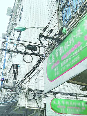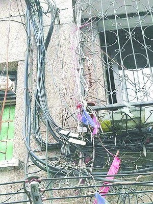 有居民反映,现在一些新建小区已预留出线路走向的位置,有的事先预留空间,把缆线埋入墙体,但这些老小区在安装电线、网线时,住户只能从楼外引进线路,再拉进屋内。很多居民在墙上钻个孔,把线拉到外面,且毫无规则,使小区内各种线路不断增多,全混杂在一起,甚至让很多专业人员也分不清哪根是网线、哪根是电线,哪根是自家的,哪根是别家的。
