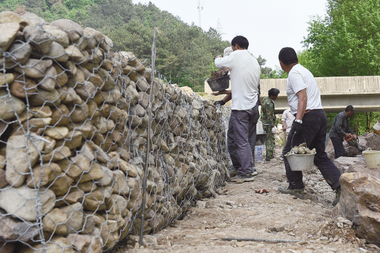 4月15日,浙江进入汛期。据介绍,这种“石笼箱”采用的是热镀钢丝,可以保证30年在水下不生锈。施工人员将金属网笼摆放在河堤上,然后往网笼中铺填石块,等石块铺满,自然压紧,一段堤基就算完工了。由于这种“石笼箱”可以让水与堤相互作用,石块的缝隙间既可长草,也可任由虾蟹栖息产卵,水体与堤岸间自然对流交换,维护生态平衡,其效果既生态环保,又安全实用。
