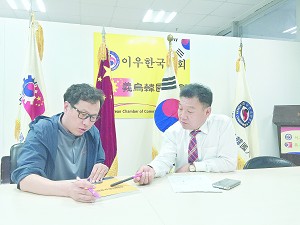 从那以后,如何让在义韩商更加团结起来,生活得更快乐,成了韩基正的努力目标。2006年,韩基正加入了韩国商会,致力于为在义韩商服务。从一开始做杂货的部长到副会长,再到首度副会长,到2013年正式出任会长,尽管生意繁忙,但韩基正努力尽心尽职。