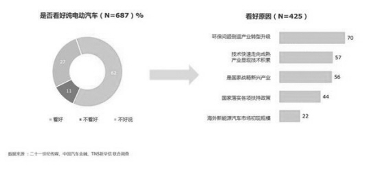 近日, 《2016中国新创汽车市场趋势调查报告》(以下简称报告)发布,调研机构通过访问687位消费者(主要分为三部分人群:现有电动车拥有者,使用者;虽然没有电动车,有过驾驶纯电动车经验;既没有电动车,也没有驾驶经验),给出了电动汽车行业发展的趋势报告。相比11%的不看好者,62%的消费者认为电动汽车会有良好的发展前景。在义乌,去年新能源汽车的销量较前一年也明显提高,相比纯电动,混合动力的更受消费者欢迎。