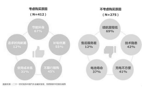 根据报告,在消费者的购买理由里,55%的因素是补贴。在这点上,比亚迪义乌迪远市场经理沈新江也表示,补贴的存在对于新能源汽车的销售的确起到了很大的推动作用。以一辆售价20多万元的车为例,按照目前的政策,国家补贴为3万元(义乌对于新能源汽车的地方补贴3月份也是3万元),购置税全免,这样加起来一下子就能省掉7万多元,对于不少本来就有意向的客户,等于吃下了“定心丸”。