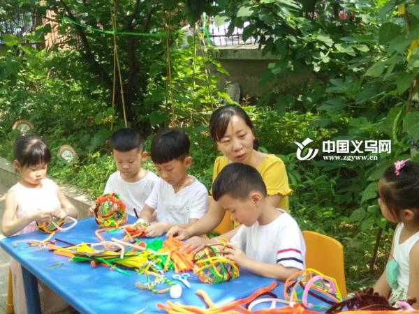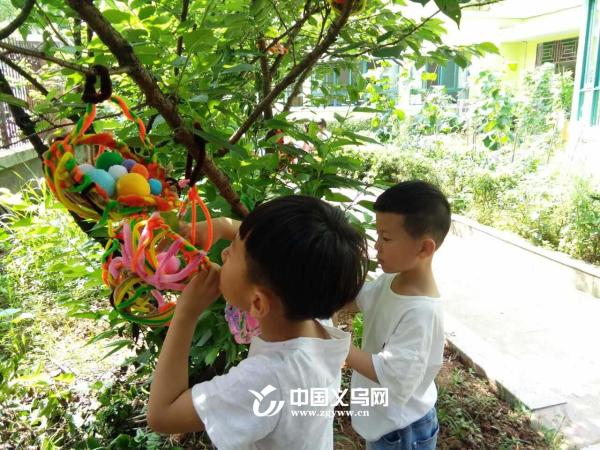 中国义乌网6月17日讯(通讯员 方笑娟)今年义乌国贸幼儿园开辟了“开心农场”,课余大家在一起播种、浇水、施肥,看着花果蔬菜慢慢长大特别的开心。每天去农场看着蝴蝶飞,看着小鸟停在树梢唱歌,别提有多兴奋,于是一场“我给小鸟一个温馨的家”的总动员开始了。老师和小朋友一起去找来扭扭棒、柳条……