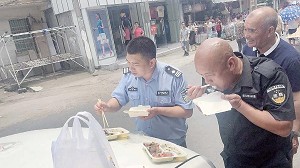 4月2日,清明节放假。一大早,叶卓明一边拿着杯子往自己嘴里送着肠胃宁片、阿莫西林胶囊,一边指挥着队员们整装出发准备执法。义亭车站路边,来往穿梭的人们赶着回乡祭祖,而有一波穿着浅蓝色制服的人,却正忙着对义亭“后院”的脏乱差进行集中整改。
