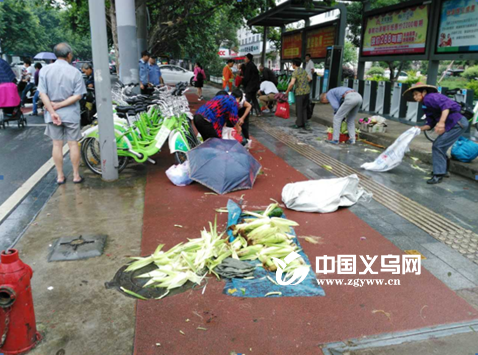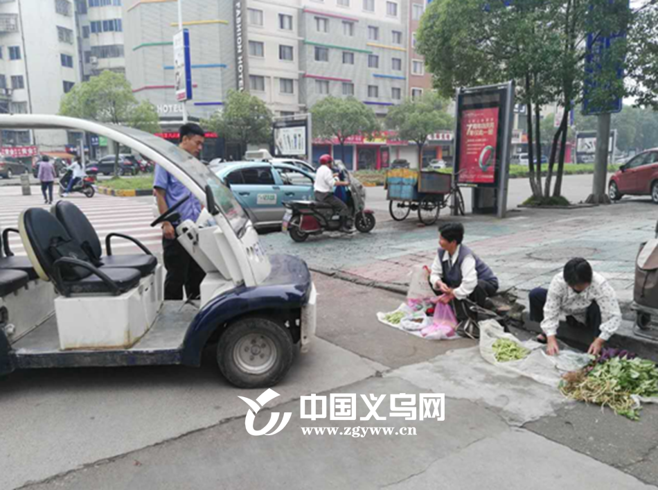 而近来,义乌市综合行政执法局稠城大队在巡查的过程中发现,稠州北路、稠州中路、工人路、绣湖西路等多条路段上都出现了由老太太、老爷爷摆设的卖菜小摊点。按照老人家们的说法,都是家中自种的蔬菜,自家吃不完所以才拿来兜售。虽然这类摊点小得占地不到一平方米,但是当它们成群出现时,道路两侧瞬间就成了“闹市”——菜叶、玉米叶散落满地,破坏了道路的整洁;人行道空间被无限压缩,有时连一人通行都颇为困难;甚至,还有摊点设置在了马路上,存在极严重的交通安全隐患。