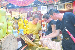 游客对异国风情的工艺品颇感兴趣。