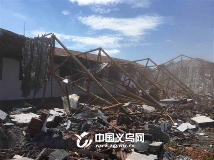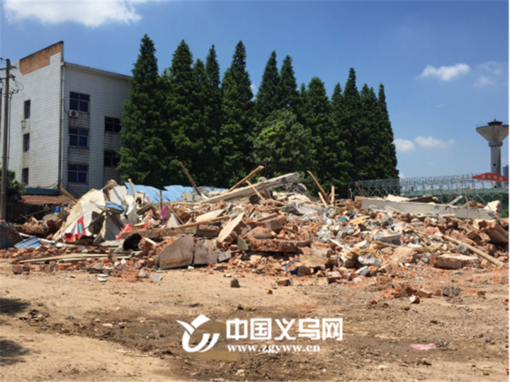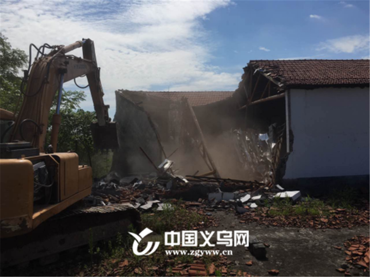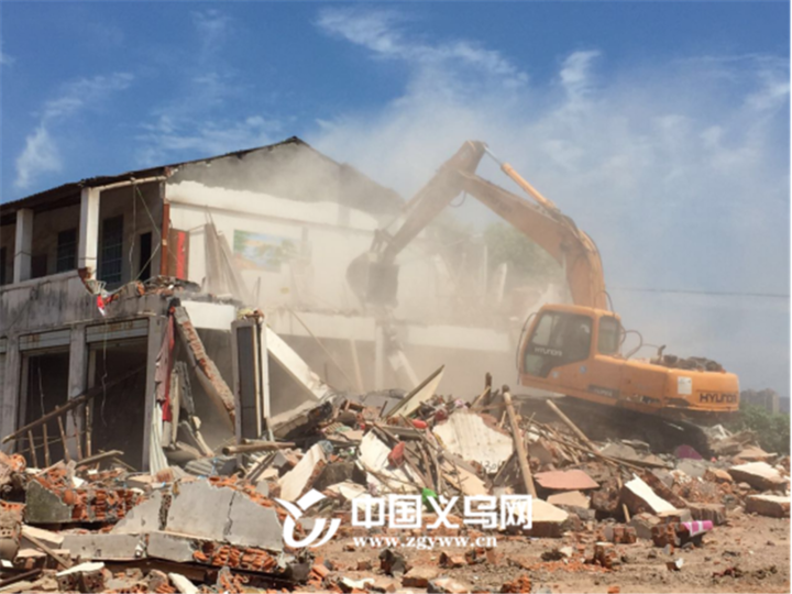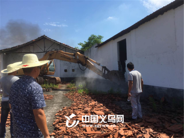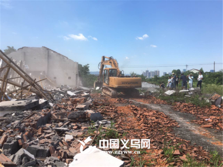 画面二:下骆宅工作片工作人员现场指挥,冒高温酷暑,抓紧对大通路北边的违建点进行拆除,累计拆除面积1400余平方米。