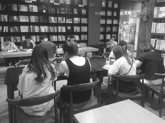 楼炜炜是一名80后,他常常在书吧里忙到凌晨才回家。他说,跟平时相比,暑期书吧的客流量明显增加,来的多是学生群体。