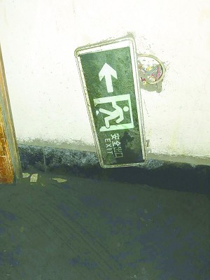 “江迪”厂房的墙上一疏散指示标志已脱落。
