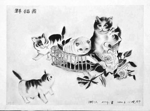 义乌老艺人周洪刚创作于1996年的炭精画《群猫图》