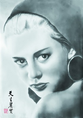 义乌老艺人徐冰雪创作于1992年的炭精画《天生丽质》