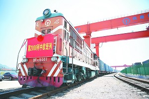 中欧班列(义乌-马德里)从铁路义乌西货运站鸣笛驶出。