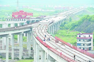 义乌疏港高速公路建设施工现场。