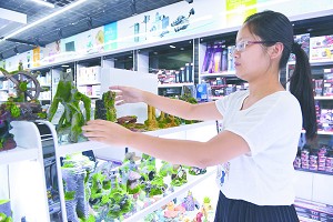 中国义乌网8月1日讯(义乌商报记者 吴峰宇)人造仿真水草、迷你五彩石假山、仿真河道……在国际商贸城五区四楼宠物(水族)用品区块,琳琅满目的仿真景物让人目不暇接。记者了解到,水族箱、鱼缸、增氧设备、潜水泵、加热棒、照明灯具、鱼缸造景物等水族器材产品和装饰品销量不错,内外贸订单逐步热销。
