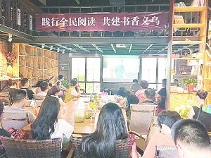义乌的这个“樊登读书会”作为上海“樊登读书会”总部的分支机构,负责整个金华区域的读书活动,是由商人王旭飞组建的。王旭飞说,“现在我和妻子一起都是在补课。”
