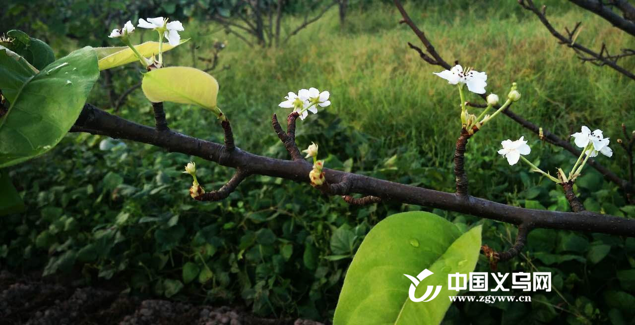 中国义乌网8月14日讯(通讯员方笑娟)盛夏时节,西山下村口的果园的几棵梨树居然开出了朵朵洁白的花儿。在火热的八月,让人感觉仿佛回到了春天。据果农介绍,这些梨树已经种了六七年,每年三月左右都会正常地开花结果。不过近两年果子不多,但在今年盛夏,这些树几乎全都开出成片的花朵,还是第一次见到。这种现象属于梨树的反常开花现象。像这样大面积地开花是少见的,这个原因主要是上一年结果过多,也有气候原因影响,导致今年春季表现为小年了,无法正常时候开花。”