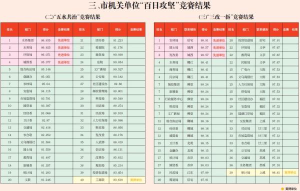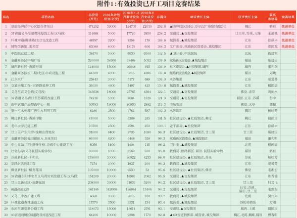 2016年8月义乌“百日攻坚”竞赛结果通报