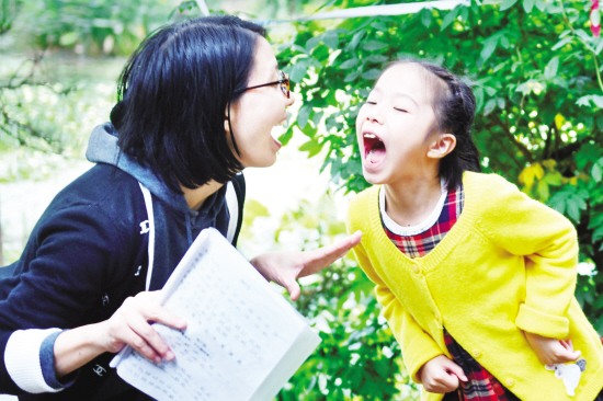 “h-e-he m-a-ma连起来念河马,河马是怎么叫的呀?”昨天下午,正在读一年级的王乐一和妈妈一起,在义乌骆宾王公园一个角落里练习拼音。王乐一妈妈用趣味的情境模式,让女儿学习拼音。她告诉记者,之前在家里陪女儿练习有些枯燥,就带着女儿来到公园练习大声朗读,这个方法激发了女儿的学习热情,又可以呼吸新鲜空气。