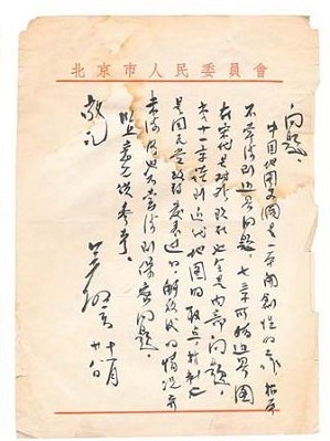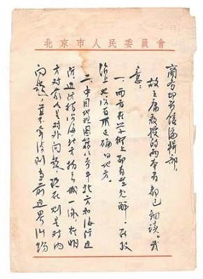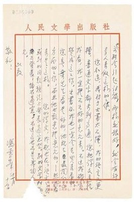 作为共产党与鲁迅的联络人,冯雪峰的文学创作与文学理论成就显赫。此次展出的手迹《致宋云斌信札》以钢笔书写,其中的文字行草兼具。虽是直排由上往下书写,但是没有为了追求书写速度而过多连笔,文字与文字之间有明确的空间,使得文字的识读性大大提升。整件书迹文字流畅,一气呵成,少有涂改,文字虽显潦草但不杂乱,整体清爽大方。