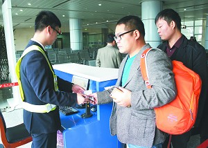 旅客检票登机。