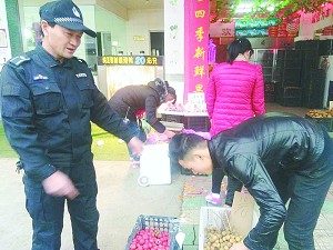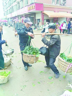 龚天富帮助老人转移摊点。