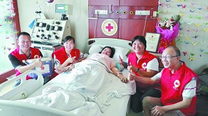 2015年8月17日,管倩倩在志愿者们的陪伴下,捐献了造血干细胞(资料图片)。