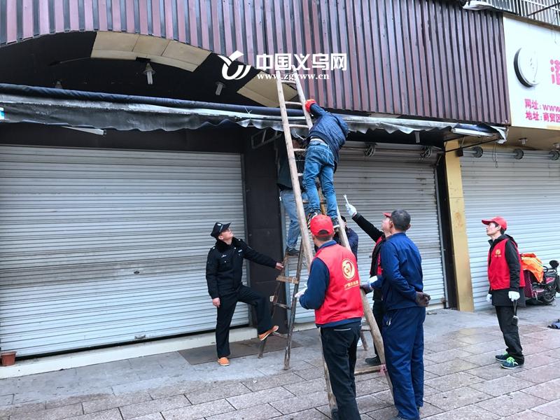 在宾王商贸区内,记者看到义乌市综合行政执法局工作人员也忙的不可开交,由局长鲍建平带队,对附近区域的占道经营、违建遮阳棚等进行排查,并统一拆除。“像这类现象不仅影响市容市貌,也存在非常多的安全隐患,我们采取‘劝整结合’的方式,引导大家建设美丽社区。”鲍建平说。