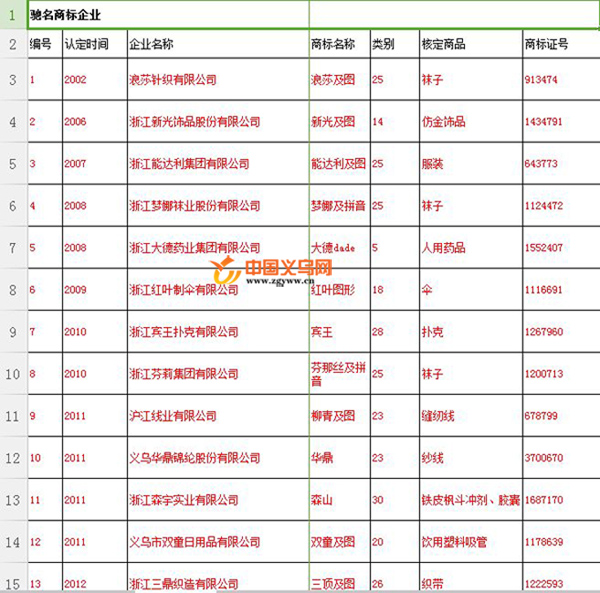 中国义乌网1月9日讯(记者 龚书弘 通讯员 刘哲 胡江民)近日,浙江省工商局和金华市市场监管局公布了2016年度被认定为浙江省著名商标和金华市著名商标名单。义乌市“三溪堂”、“博尼”等8件商标被认定为浙江省著名商标;“赤岸西海”、“黄培记号”等24件商标被认定为金华市著名商标。同时,“双童”、“欧耶”等39件商标确认延续为浙江省著名商标,“浪莎”、“森宇”等69件商标确认延续为金华市著名商标。