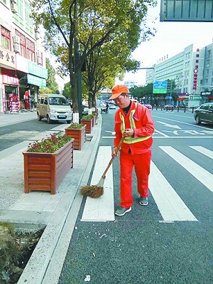 张师傅一直负责稠州西路国贸大道交叉口路段的保洁工作,他说春节这几天工作量和平常差不多,“我不觉得累,每天扫马路,就当锻炼身体。”