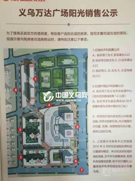 庄先生向记者出示了一份“义乌万达广场阳光销售公示”,该公示图标明C区规划中有一处停车场出入口。“因为房子是期房,建设的时候业主没法进去看,只能以公示图为准,至于最后C区的出入口为什么没有了,我们到现在也不清楚。”庄先生还认为停车场出入口坡道终点距基地内部道路边线的距离不足6米。