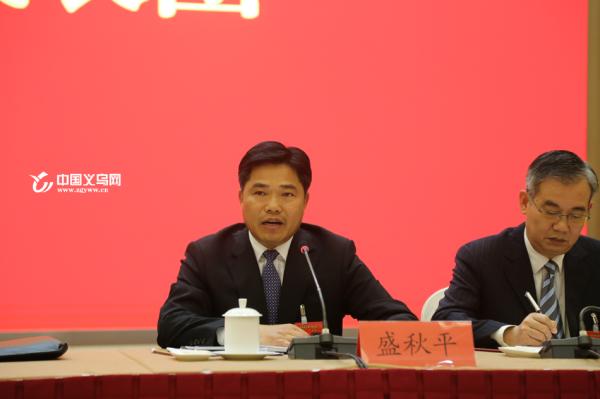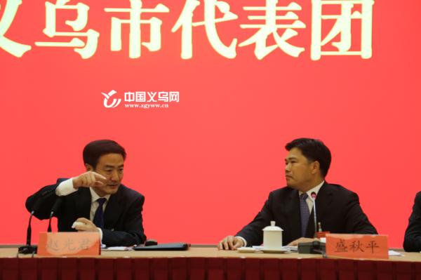 盛秋平在发言时说,暨军民市长所做的报告高屋建瓴,通篇贯彻中央、省委省政府的决策部署和金华市第七次党代会精神,特别是围绕党代会提出的推进“五大战略”落地,干好“三条廊道”“十百千万”工程和“义甬舟”开放大通道等大事要事,勾勒了金华全市未来五年发展目标和工作要点。报告客观实在、实事求是,具有很强的针对性、指导性、操作性,注重用数据说话,其中前半部分就有16处提到义乌,体现了金华市委市政府对义乌的重视。报告着眼全局,既不讳言科技创新水平不高、一些工作人员不担当等现实问题,又提出建设“服务、责任、法治、廉洁”政府,深受鼓舞和启发。义乌要勇扛旗帜、勇当标兵,努力为建设浙江省第四大都市区作出应有贡献。一是深入对接“三条廊道”。要加快推进金义东城际轨道交通义乌段等重大交通基础设施建设;加快集水文化、水生态、水旅游为一体的双江湖区域规划开发建设,让美丽画卷变成现实;加快引进一批重大产业项目和大院大所、科研院校,打造产学研一体的创新驱动大平台。二是深入实施实业振兴。围绕实施“十百千万”工程,聚焦时尚、信息、健康、装备四大战略产业,厚植义乌商贸优势,补齐实业短板。三是勇当改革开放尖兵。深入实施包括农村土地制度改革等各项领域改革,抢抓改革带来的难得机遇;加快打通“义新欧”和“义甬舟”两大开放大通道,打造“买全球、卖全球”格局。