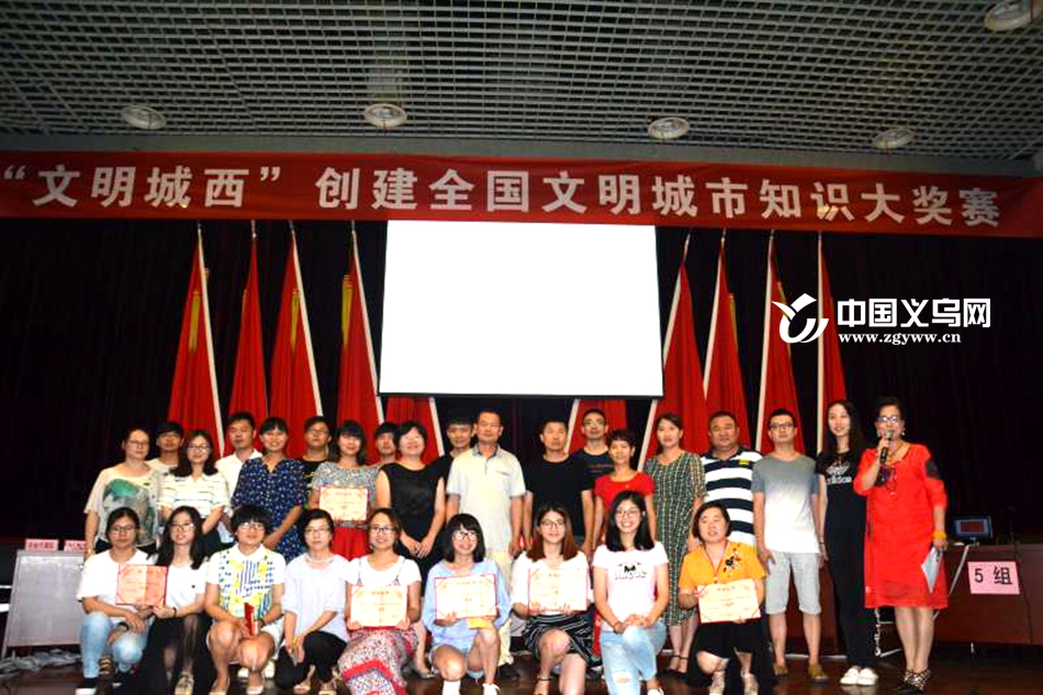 中国义乌网6月30日讯(通讯员 王静莉)为进一步普及创建文明城市知识,提高辖区居民群众对创建文明城市的知晓率和支持率,今天(6月30日)下午,义乌城西街道开展了“文明城西”知识大奖赛。街道全体干部工作员、各村村两委成员、下属各单位三百余人参加活动。