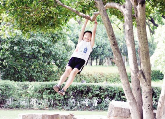 昨天上午8时许,在义乌绣湖公园,一名小孩双手握着树枝,双脚腾空,身子来回晃动,仿佛是在荡秋千。稍有不慎,小男孩就有可能从树上掉下来,十分危险。
