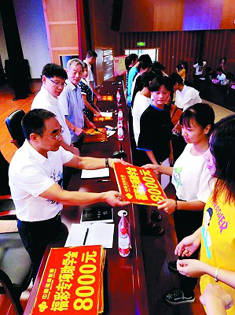 8月30日下午,在“福彩暖万家·助圆大学梦”困难大学新生专项资助活动助学金发放仪式上,50名家境贫困的大学新生每人领到了8000元助学金。
